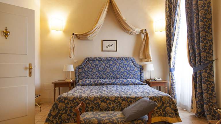 Das Hotel verfügt über 32 Zimmer auf 3 Etagen, die bequem mit einem Aufzug erreichbar sind. Die Zimmer sind geräumig und im historischen Stil eingerichtet. Zur Ausstattung gehören eine Klimaanlage, eine Heizung, ein Safe, eine Minibar, ein Schreibtisch und ein Telefon. WLAN ist im gesamten Hotel kostenlos verfügbar. Die Badezimmer sind mit einer Dusche, einer Badewanne, einem Bidet, einem Haartrockner und einem Kosmetikspiegel ausgestattet. Das Hotel bietet auch rollstuhlgerechte Zimmer und Nichtraucherzimmer.
