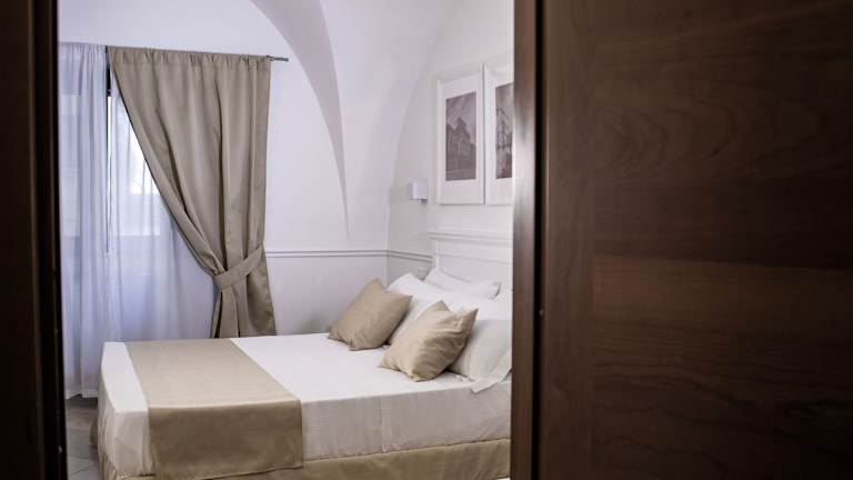 Die 22 Zimmer im Palazzo Sant'Elena sind komfortabel und stilvoll eingerichtet. Jedes Zimmer verfügt über eine Klimaanlage, eine Minibar und einen LCD-Fernseher. Das WLAN ist kostenlos verfügbar und es gibt auch einen Safe und einen Schreibtisch. Die Badezimmer sind mit einer Dusche, einem Regenduschkopf und einem Bidet ausgestattet.