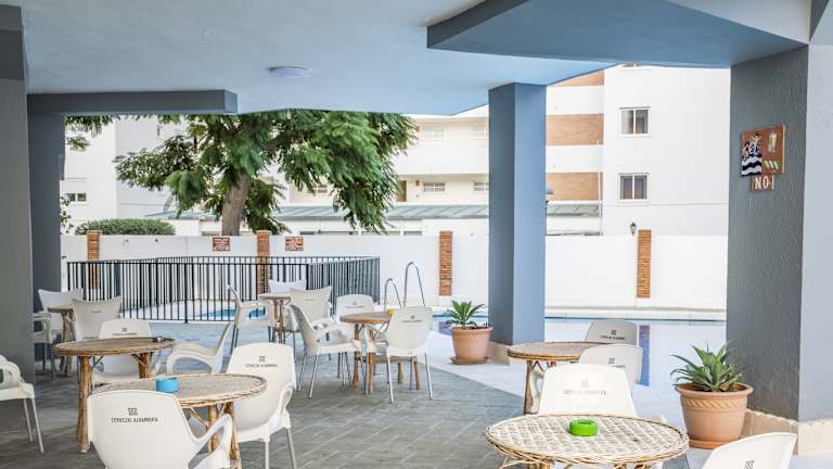 Das Hotel Apartamentos Palm Beach Club Carihuela in Torremolinos bietet eine ideale Lage, nur eine Gehminute von den Stränden des Viertels Carihuela entfernt. Der Komplex besticht durch Außenpools, eine sonnige Terrasse und kostenfreies WLAN in den öffentlichen Bereichen. Die Apartments sind hell und geschmackvoll eingerichtet und verfügen über eine Küchenzeile und Sat-TV. Das Frühstück und leichte Mahlzeiten werden in der Bar-Cafeteria serviert, während Cocktails auf der Terrasse genossen werden können. Der Supermarkt des Palm Beach bietet Lebensmittel und der ganzjährig geöffnete Pool sowie kostenfreie Sonnenliegen laden zum Entspannen ein. Das Hotel verfügt auch über eine große Bibliothek mit über 2.000 Büchern und eine Gemeinschaftslounge mit TV. Das freundliche Personal an der Rezeption hilft Ihnen gerne bei touristischen Informationen und Reservierungen für Restaurants oder Ausflügen.