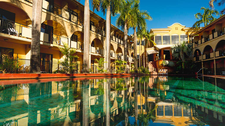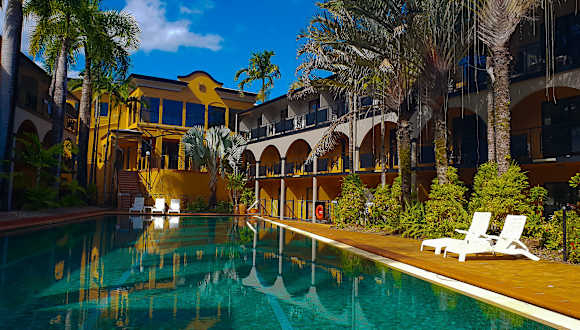 Das Palm Royale Cairns befindet sich in einer ruhigen Lage am Fuße einer Bergkette und ist von einem 1 Hektar großen tropischen Garten umgeben. Das Stadtzentrum von Cairns ist nur 5 km entfernt und der Flughafen Cairns ist in etwa 15 Minuten mit dem Auto erreichbar. In der Nähe des Hotels befindet sich auch der Tjapukai Cultural Park, der einen Besuch wert ist.