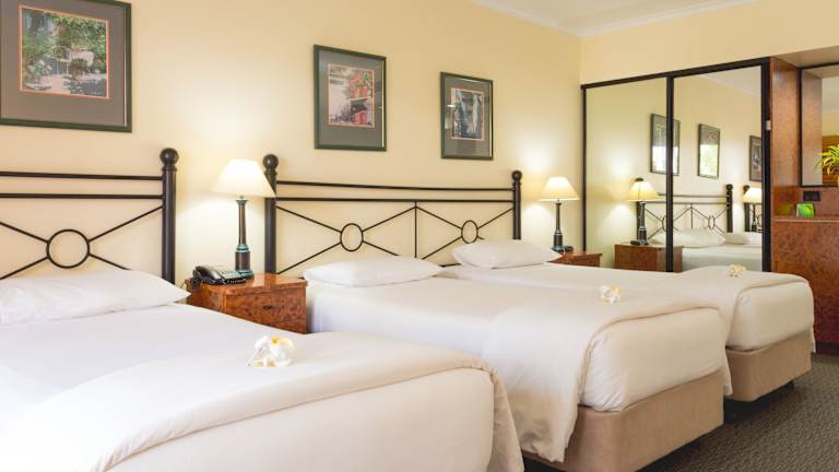 Die Zimmer im Palm Royale Cairns sind komfortabel und mediterran inspiriert eingerichtet. Jedes Zimmer verfügt über einen eigenen Balkon mit Blick auf den Pool oder den Garten. Zur Ausstattung gehören ein TV, ein Kühlschrank und Tee- und Kaffeezubehör. Das Hotel bietet auch einen Wäscheservice und eine Autovermietung. Das freundliche Personal an der Rezeption steht den Gästen rund um die Uhr zur Verfügung und gibt gerne Empfehlungen für Sehenswürdigkeiten in der Umgebung.