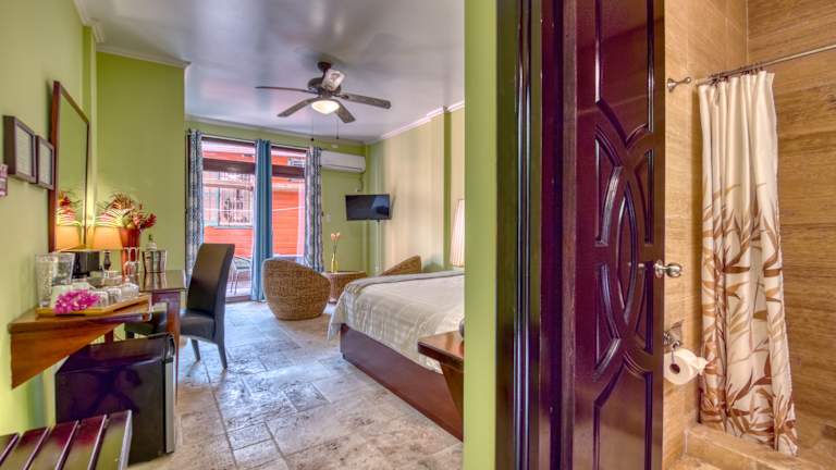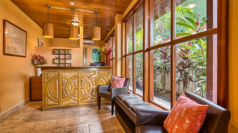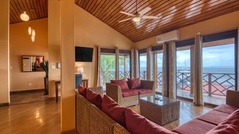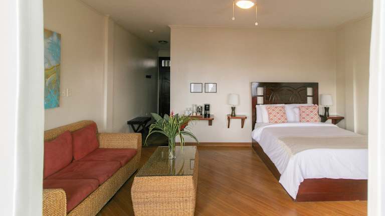 Das Hotel Palma Royale in Bocas del Toro ist die perfekte Unterkunft für Ihren Aufenthalt auf der Insel Colon. Genießen Sie komfortable Zimmer mit kostenfreiem WLAN und entweder einem wunderschönen Garten- oder Meerblick. Das Hotel besticht durch seine eleganten Zimmer, die in warmen Farben gehalten sind und mit hochwertigen Holzmöbeln ausgestattet sind. Hier finden Sie alles, was Sie für einen angenehmen Aufenthalt benötigen, darunter ein LCD-Sat-TV, ein Minikühlschrank und eine luxuriöse Kaffeemaschine. In der unmittelbaren Umgebung des Hotels finden Sie einen Gourmet-Supermarkt und verschiedene Restaurants, die für Ihr leibliches Wohl sorgen. Das freundliche Personal an der Rezeption steht Ihnen gerne zur Verfügung und hilft Ihnen bei der Organisation von Ausflügen und Aktivitäten in der Umgebung. Der Flughafen Bocas del Toro ist nur 2 km entfernt und der Meeres-Nationalpark Isla Bastimentos ist nach einer kurzen Bootsfahrt erreichbar.