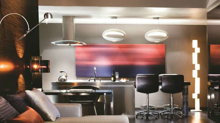 Die Zimmer im Palms Place Hotel and Spa sind modern eingerichtet und verfügen über raumhohe Fenster, eine Küchenzeile und ein luxuriöses Marmorbad. Zur Ausstattung gehören auch ein 42-Zoll-Plasma-Flachbild-TV und WLAN.