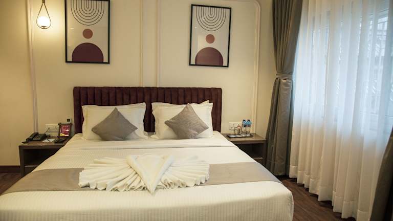 Die klimatisierten Zimmer sind mit einem Schreibtisch, einem Wasserkocher, einem Kühlschrank, einem Safe sowie einem Flachbild-TV ausgestattet. Jedes Zimmer verfügt über ein eigenes Badezimmer mit Dusche. Zur Ausstattung gehören ebenfalls Bettwäsche und Handtücher.