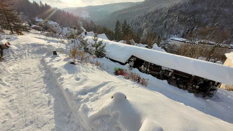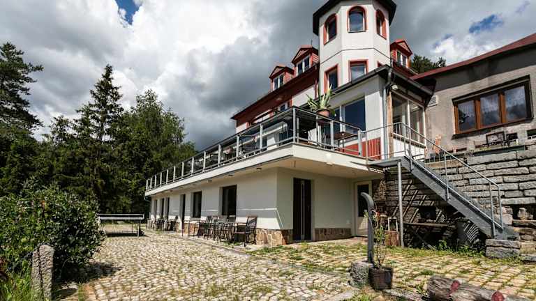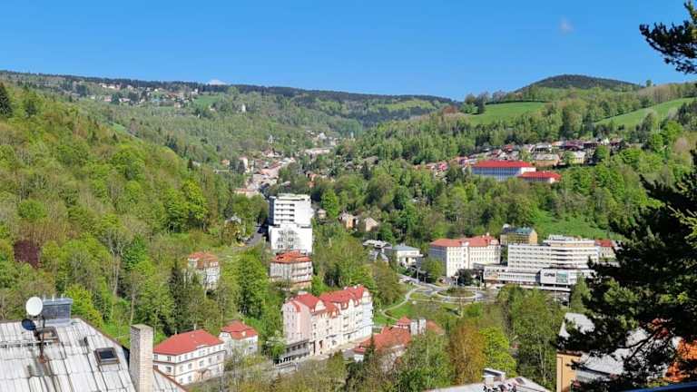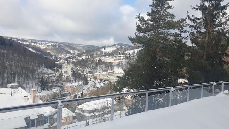 Das Hotel Panorama liegt am Rande eines Waldes und bietet einen herrlichen Blick auf das Tal von Jáchymov. In der Umgebung gibt es viele Möglichkeiten für Outdoor-Aktivitäten wie Skifahren, Wandern und Tennis spielen. Der Aquapark und das Wellness- und Fitnesscenter sind nur wenige Gehminuten entfernt. Die Talstation des Sessellifts, der ins Skigebiet Klínovec führt, ist ebenfalls in der Nähe.