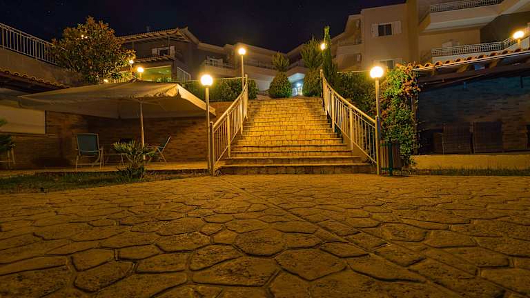 Das Panorama Resort liegt zentral in Finikounda und nur 350 m vom Sandstrand entfernt. Sie können die umliegenden Restaurants, Bars und Einkaufsmöglichkeiten bequem zu Fuß erreichen. In der Nähe des Resorts gibt es auch verschiedene Ausflugsmöglichkeiten, wie die Städte Pylos und Koroni, das Küstendorf Methoni und die Stadt Kalamata. Die Privatparkplätze am Hotel stehen Ihnen kostenlos zur Verfügung.