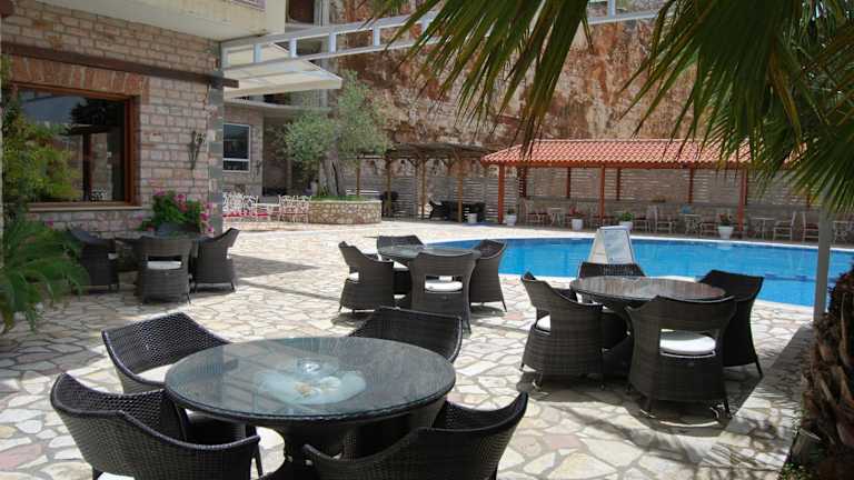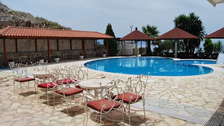 Entspannen Sie sich am Außenpool des Hotels Panorama Sarande und genießen Sie die Sonne und die erfrischende Wasser. Verbringen Sie erholsame Stunden am Pool und lassen Sie den Alltag hinter sich.