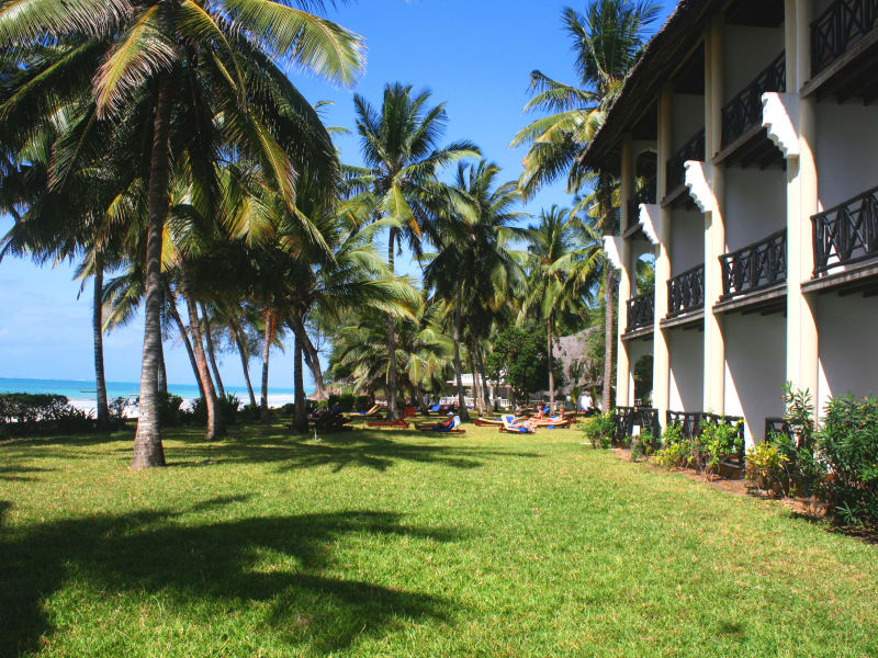 Das Papillon Lagoon Reef Hotel befindet sich direkt am Strand des Diani Beach. Der breite, weiße Sandstrand lädt zum Entspannen ein und bietet eine atemberaubende Kulisse. Das Hotel liegt inmitten einer tropischen und großzügigen Gartenanlage und vermittelt das Gefühl, mitten im Regenwald zu sein. In der näheren Umgebung finden Sie zahlreiche Palmen und können die Schönheit der Natur genießen. Das Hotel liegt etwa 7 km vom Stadtzentrum entfernt und bietet eine gute Anbindung an die umliegenden Orte.