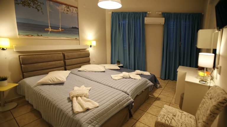 Die Zimmer im Hotel Paradise sind schlicht eingerichtet, aber sauber und komfortabel. Sie sind klimatisiert und bieten Ihnen eine angenehme Atmosphäre während Ihres Aufenthalts. Das Hotel ist von üppig bewachsenen Gärten und ruhigen Innenhöfen umgeben, was zu einer entspannten und friedlichen Atmosphäre beiträgt. Einige Zimmer bieten zudem einen atemberaubenden Blick auf das Meer.