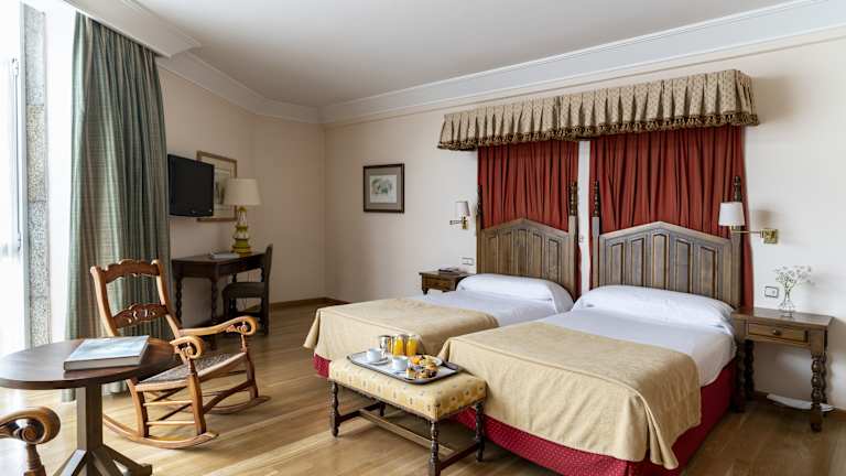 Das Hotel Parador de Vilalba ist in einem mittelalterlichen Turm untergebracht, der die Stadt dominiert. Es bietet eine Kombination aus historischem Charme und modernem Komfort. Die Unterkunft umfasst ein Hauptgebäude mit 3 Stockwerken und 6 Nebengebäuden sowie 48 Zimmer, die durch ihre gemütliche Gestaltung und mittelalterliches Flair bestechen. Das Hotel wurde 1967 eröffnet und zuletzt 2000 umfassend renoviert.