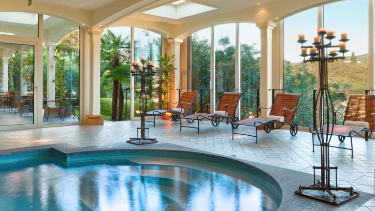 Fitnessraum, Squash, beiheiztes Panorama-Schwimmbad, Wellnessbereich mit Sauna und türkischem Dampfbad, Massagen