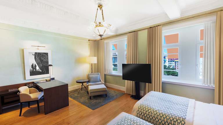 Die Zimmer sind großzügig gestaltet und verfügen über Klimaanlage, Balkon oder Terrasse, Safe, Minibar sowie ein Badezimmer mit Dusche und Badewanne. Ausstattungen wie Tee-/Kaffeemaschine, Bügelset, TV-Gerät und WiFi sind ebenfalls vorhanden. Barrierefreie Zimmer mit rollstuhlgerechten Einrichtungen sind verfügbar.