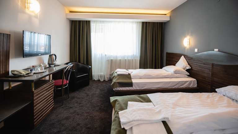 Das Hotel Park Sfantu Gheorghe befindet sich im Zentrum von Sfantu Gheorghe, einer der ältesten Städte in Siebenbürgen. Die Lage ist ruhig und idyllisch, umgeben vom Erzsebet Park. In der Nähe finden Sie verschiedene Sehenswürdigkeiten wie das Szekler Nationalmuseum und die Hauptstraße. Der Bahnhof ist ebenfalls gut erreichbar. Das Skigebiet Sugas Bai ist nur eine kurze Fahrt vom Hotel entfernt und bietet im Winter tolle Möglichkeiten zum Skifahren und Snowboarden.