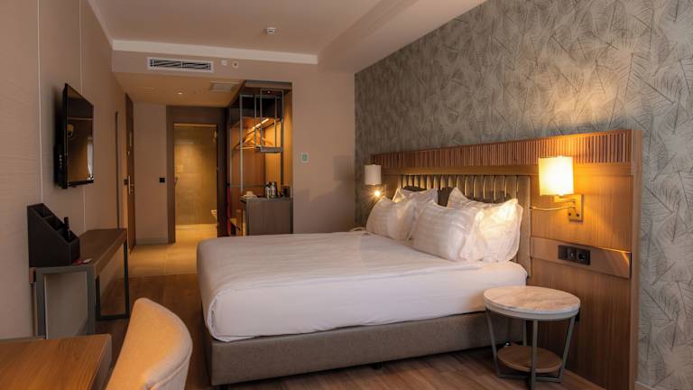 Das Pasapark Hotel bietet 47 moderne Zimmer auf 5 Etagen. Jedes Zimmer verfügt über Annehmlichkeiten wie kostenfreies WLAN, einen Flachbild-TV, eine Klimaanlage, eine Minibar und eine Mikrowelle. Die Badezimmer sind mit einer Hydromassagedusche, einem Design-Waschbecken aus Keramik, einem Haartrockner und Bademänteln ausgestattet. Rollstuhlgerechte Zimmer sind ebenfalls vorhanden.