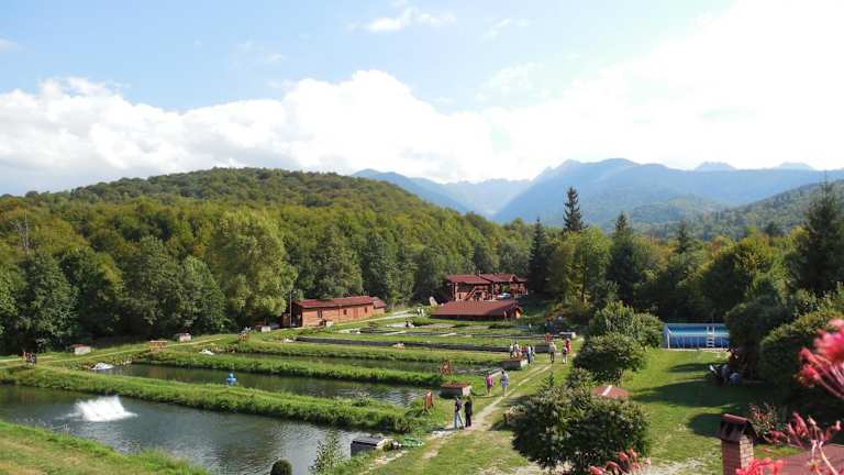 Der Complex Pastravaria Albota befindet sich zwischen Sibiu und Brasov im malerischen Făgăraș-Gebirge. Die Lage ist ideal für Naturliebhaber und Outdoor-Enthusiasten, die die umliegende Landschaft erkunden möchten. Die nächste Bushaltestelle und Geschäfte sind etwa 8 km entfernt, während Sibiu ca. 50 km entfernt liegt.