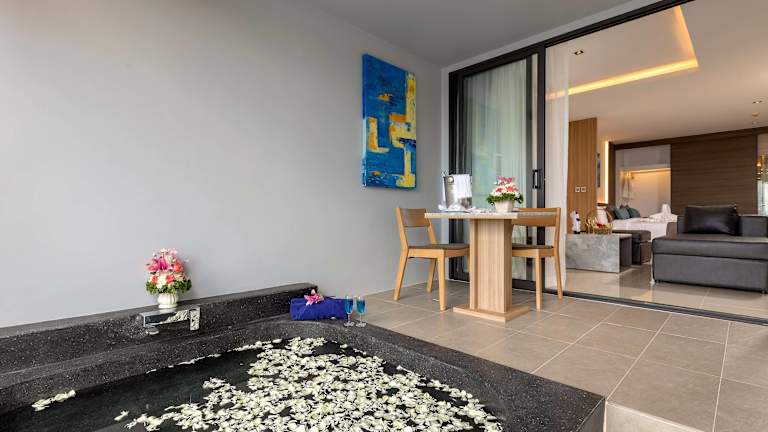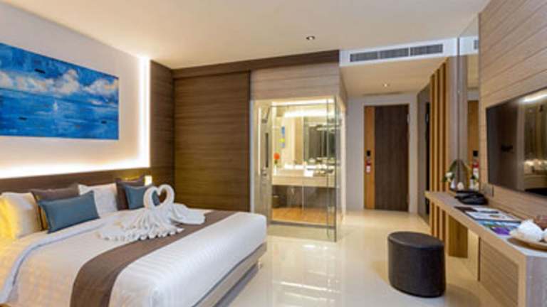 Das Hotel befindet sich direkt am Strand in der Patong-Bucht, umgeben von einem über 3 km langen weißen Sandstrand. Der Kata-Strand ist etwa 7 km entfernt, während Phuket Zentrum nach ca. 30 Fahrminuten erreicht werden kann. Der internationale Flughafen Phuket ist in einer Distanz von etwa 45 km gelegen. Weitere Entfernungen sind der nächste Bahnhof in ca. 19 km und das Stadtzentrum in ca. 15 km.