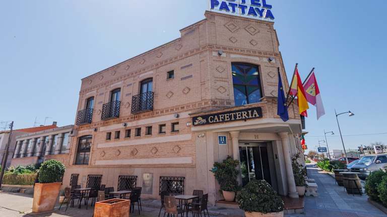 Das Hotel Pattaya bietet Ihnen eine moderne und trendige Unterkunft am Rande der historischen Stadt Toledo, die zum Weltkulturerbe gehört. Ideal für einen Kurzurlaub in der Nähe der Hauptstadt Madrid. Genießen Sie den Komfort der gut ausgestatteten Zimmer und lassen Sie sich im Hotelrestaurant mit hausgemachter Küche verwöhnen. Die ausgezeichnete Lage ermöglicht es Ihnen, Toledo in nur 15 Minuten zu erreichen und Madrid ist nur 40 Autominuten entfernt.