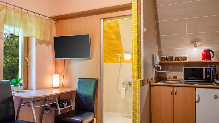 Die Apartments im Apartmany PAVILON D - Budget, Classic, Family - Novy Smokovec - High Tatras sind voll ausgestattet und bieten Ihnen alles, was Sie für einen komfortablen Aufenthalt benötigen. Jedes Apartment verfügt über WLAN, eine Küche mit allen notwendigen Geräten und ein eigenes Badezimmer mit Dusche. Die zentrale Lage des Gästehauses ermöglicht es Ihnen, Lebensmittelgeschäfte und Restaurants in nur 200 m Entfernung zu erreichen. Es gibt auch einen Fahrradverleih und einen Skiverleih in der Nähe, sowie einen abschließbaren Stauraum für Ihre Skiausrüstung.