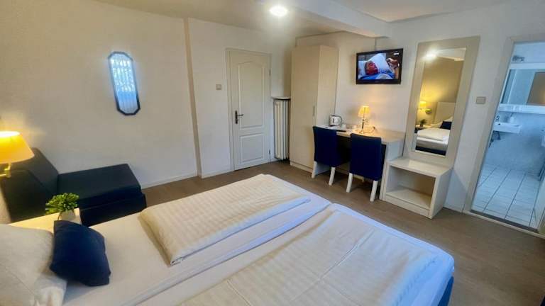 Das Hotel Pelikan bietet komfortable Zimmer, in denen Sie nach einer ruhigen Nacht erholt aufwachen können. Das kostenfreie WLAN ermöglicht es Ihnen, mit Ihren Lieben in Verbindung zu bleiben, während Sie die Annehmlichkeiten Ihres Zimmers genießen. Beginnen Sie Ihren Tag im gemütlichen Frühstücksraum des Hotels mit einem leckeren Frühstücksbuffet und stärken Sie sich für einen Tag voller Entdeckungen.