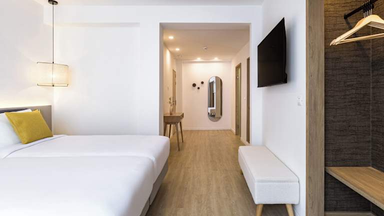 Das Hotel verfügt über 73 Zimmer, die über eine Klimaanlage, einen Balkon, ein Doppelbett, ein Sofabett, einen Safe, eine Minibar, einen Schreibtisch und einen Kühlschrank verfügen. Zur weiteren Ausstattung gehören ein Telefon, ein TV-Gerät und kostenfreies WLAN. Die Badezimmer sind mit einer Dusche, einer Badewanne, einem Bidet, einem Haartrockner und Kosmetikartikeln ausgestattet.