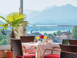 Buchen Sie die Hotel-Pension Melcher für einen erholsamen Aufenthalt inmitten der Karawanken. Genießen Sie den wunderschönen Blick auf die Berge und den Faaker See von Ihrem Balkon aus. Das reichhaltige Frühstücksbuffet bietet regionale Spezialitäten und eine Bio-Ecke. Entspannen Sie in der Open-Air-Lounge vor dem Haus und nutzen Sie den kostenfreien Eintritt zum Strand Drobollach im Sommer. Die Unterkunft bietet auch kostenlose Parkplätze und WLAN.