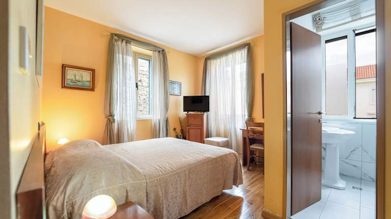 Die Zimmer im Hotel Peristil sind komfortabel und modern eingerichtet. Jedes Zimmer verfügt über eine Klimaanlage, einen Flachbild-Sat-TV und einen Schreibtisch. Im eigenen Bad finden Sie eine Dusche, einen Haartrockner und kostenlose Pflegeprodukte vor. Einige Zimmer zeichnen sich durch ihre originalen Palastwände aus, während andere einen atemberaubenden Blick auf den Peristyl und die Kathedrale St. Duje bieten. Kostenfreies WLAN ist in allen Bereichen des Hotels verfügbar.