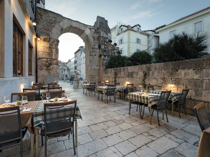 Das Hotel Peristil ist ein einzigartiges Hotel, das sich innerhalb des UNESCO-geschützten Palastes des Diokletian in Split befindet. Mit einer erstklassigen Lage direkt neben dem Silbertor und einem A-la-carte-Restaurant bietet das Hotel den perfekten Ausgangspunkt, um die Stadt zu erkunden. Die Zimmer sind klimatisiert und verfügen über modernen Komfort wie Flachbild-Sat-TV und kostenfreies WLAN. Einige Zimmer bieten sogar den besonderen Charme originaler Palastwände oder einen atemberaubenden Blick auf den Peristyl und die Kathedrale St. Duje.