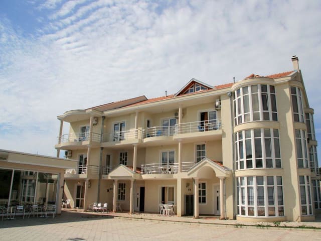 Lage: ruhig, 300 meter von traumhaften ca. 13 km langen und ca. 100 m breiten, feinsandigen Strand, auf einem großen Grundstück, zum Zentrum und Altstadt ca. 2.5 km. Linienbushaltestelle Taxi ca. 40 m entfernt.