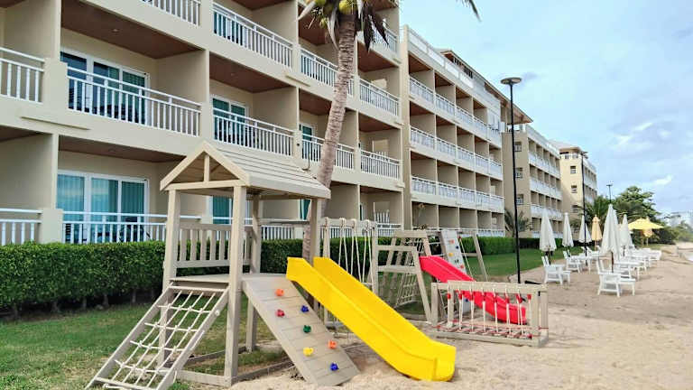 Das Resort verfügt über 90 Zimmer, darunter Suiten und Doppelzimmer. Jedes Zimmer ist geräumig und verfügt über einen eigenen Balkon mit Meerblick. Zur Ausstattung gehören eine separate Badewanne und Dusche, ein Flachbild-Sat-TV und kostenloses WLAN. Die Zimmer sind klimatisiert und bieten einen komfortablen Rückzugsort nach einem Tag am Strand.