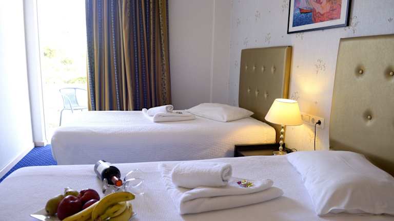 Das Hotel verfügt über 15 Zimmer, die auf drei Etagen verteilt sind. Jedes Zimmer ist mit einer Klimaanlage und Heizung ausgestattet. Die meisten Zimmer verfügen über einen eigenen Balkon mit Blick auf die Stadt oder den Garten. Zur Ausstattung gehören Sat-TV, ein Bügeleisen und ein Haartrockner. Jedes Zimmer verfügt über ein eigenes Bad mit Dusche und kostenfreien Kosmetikartikeln. WLAN steht im gesamten Hotel kostenfrei zur Verfügung.