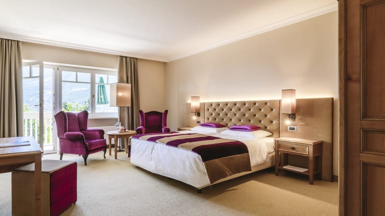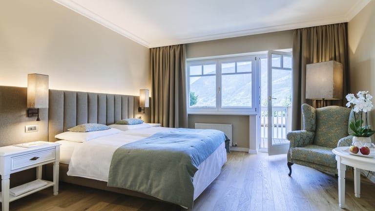 Wir liegen in Obermais - oberhalb von Meran mitten im Grünen. Die Lage ist perfekt für Naturliebhaber und Ruhe suchende, da das Hotel von prachtvollen Schlössern und üppigen Gärten umgeben ist. Über den malerischen Sissiweg erreichen Sie das Zentrum von Meran in nur 25 Minuten zu Fuß – ein schöner Spaziergang. Alternativ bringt Sie der Bus, dessen Haltestelle nur 200 Meter vom Hotel entfernt ist, in nur 10 Minuten ins pulsierende Herzen der Stadt. So können Sie die Vorzüge der Stadt genießen und gleichzeitig die ruhige und erholsame Atmosphäre der Umgebung auskosten. Diese perfekte Kombination macht das Hotel zu einem idealen Rückzugsort für Ihren ersehnten Urlaub in Meran.