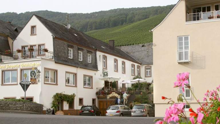 Das Hotel befindet sich weniger als 100 Meter von der Mosel entfernt in der Weinanbauregion Piesport. In der Umgebung finden sich zahlreiche Weinberge sowie die malerische Landschaft der Mosel, die in wenigen Gehminuten erreichbar ist. Die Autobahn A1 ist 9 km entfernt und ermöglicht eine Anbindung an die historische Stadt Trier, die mit dem Auto in etwa 30 Minuten zu erreichen ist.