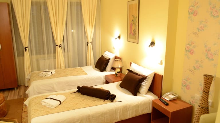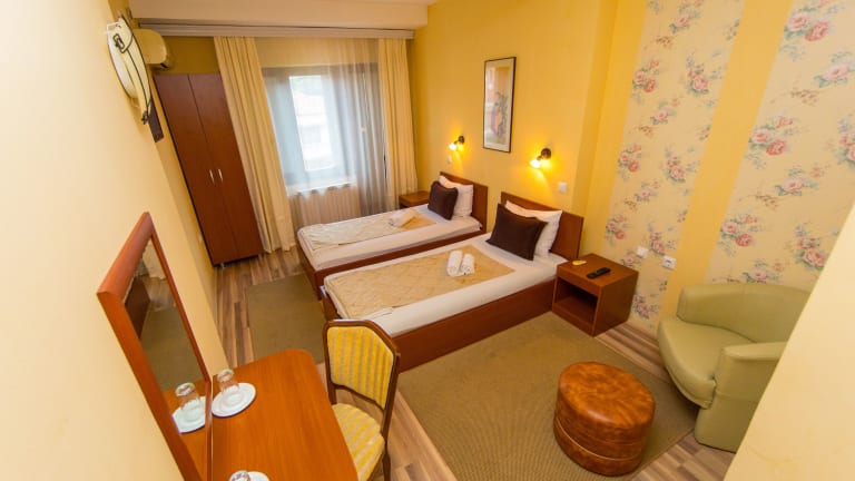 Die klimatisierten Zimmer im Hotel Pine sind gemütlich und komfortabel eingerichtet und bieten kostenfreies WLAN und Kabel-TV. Hier können Sie sich nach einem ereignisreichen Tag in Skopje entspannen und ausruhen.
