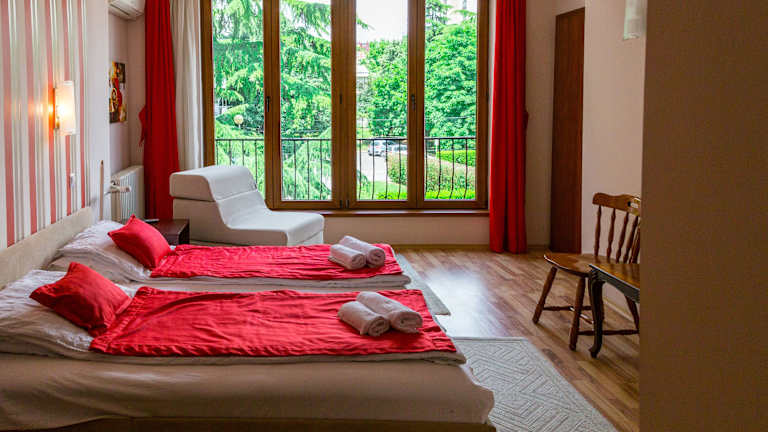 Das Hotel Pine verfügt über einen schönen Garten mit einer überdachten Terrasse, auf der Sie entspannen und die frische Luft genießen können. Das freundliche Personal an der 24-Stunden-Rezeption steht Ihnen zur Verfügung, um Ihnen bei der Organisation von Besichtigungstouren zu den wichtigsten Sehenswürdigkeiten in Skopje zu helfen. Darüber hinaus können Sie die Autovermietung und den Shuttleservice zum Flughafen „Alexander der Große“ Skopje nutzen, um Ihre Reise noch bequemer zu gestalten. Kostenlose Parkplätze stehen ebenfalls zur Verfügung.