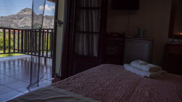 Die Zimmer im Hotel Pineas sind geräumig und bieten einen Balkon mit Blick auf die atemberaubenden Felsen von Metéora. Die Zimmer sind einfach, aber komfortabel eingerichtet und verfügen über eine Klimaanlage, einen TV, ein Bügeleisen und ein eigenes Badezimmer mit Badewanne oder Dusche.