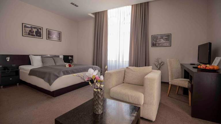 Das Hotel Platani befindet sich im Zentrum von Trebinje und ist eine ideale Ausgangsbasis, um die Stadt und ihre Umgebung zu erkunden. Die malerische Stadt Dubrovnik in Kroatien ist nur 30 km entfernt und die Küstenstadt Herceg Novi erreichen Sie nach 40 km. In der Umgebung finden Sie zahlreiche Sehenswürdigkeiten, historische Stätten und Naturschönheiten.