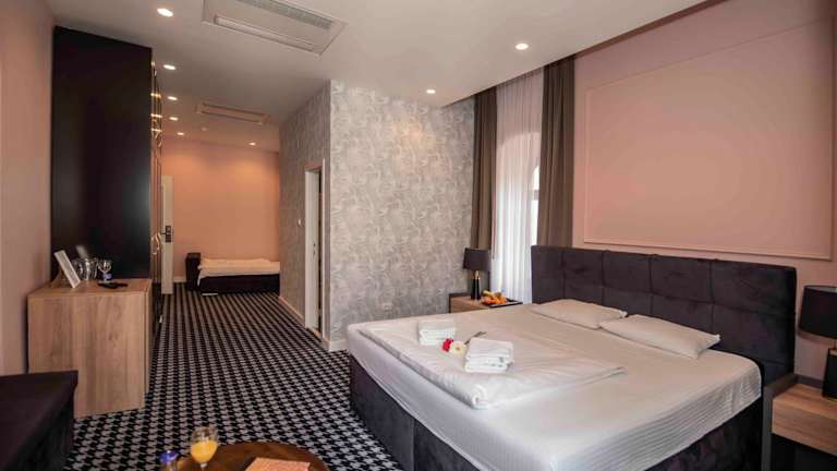 Das Hotel Platani in Trebinje bietet Ihnen einen komfortablen Aufenthalt in einem restaurierten Gebäude aus dem frühen 20. Jahrhundert. Die modernen Zimmer sind minimalistisch gestaltet und verfügen über klimatisierte Räume und kostenfreies WLAN. Genießen Sie traditionelle Küche und internationale Gerichte im Restaurant Platani und entspannen Sie auf der schattigen Terrasse der Café-Bar. Zusätzliche Annehmlichkeiten wie eine 24-Stunden-Rezeption, ein Wäsche- und Bügelservice sowie die Möglichkeit, Lunchpakete zu bestellen, sorgen für einen angenehmen Aufenthalt.