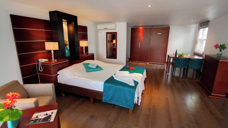 Das Van der Valk Plaza Beach & Dive Resort Bonaire ist ein All-Inclusive-Resort, das Paaren und Familien eine entspannte und abwechslungsreiche Urlaubserfahrung bietet. Mit seinem Privatstrand, dem Jachthafen und dem Zugang zu erstklassigen Tauchplätzen ist es der perfekte Ort für Wassersportliebhaber. Das Resort bietet zahlreiche Aktivitäten, darunter Bootsfahrten, Fahrrad- und Rollerverleih sowie ein Spa. Die Restaurants servieren köstliche Gerichte und erfrischende Getränke, während der Außenpool und die Sonnenterrasse zum Entspannen einladen. Ein Animationsprogramm und ein Casino sorgen für Unterhaltung.