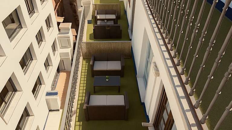 Die Terrasse des Hotels bietet Ihnen die Möglichkeit, das schöne Wetter zu genießen und sich zu entspannen.