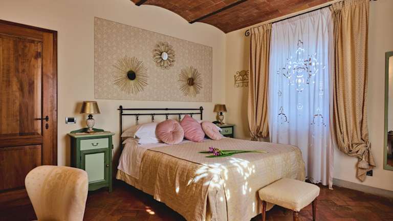 Die Zimmer im Il Vicario sind in den ehemaligen Kornkammern, Scheunen und Stallungen untergebracht und bieten eine charmante Mischung aus traditionellem toskanischem Stil und modernem Komfort. Die Zimmer sind klimatisiert und verfügen über Holzbalkendecken, Terrakottaböden und eine gemütliche Atmosphäre. Zur Ausstattung gehören Sat-TV und ein Safe, damit Sie sich während Ihres Aufenthalts sicher und wohl fühlen.