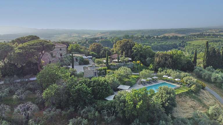 Das Hotel Poggio Piglia befindet sich in Macciano, einem kleinen Ort in der toskanischen Landschaft. Hier können Sie die Ruhe und Schönheit der Umgebung genießen und gleichzeitig eine gute Anbindung an die Autobahn A1 nutzen. Die umbrische Grenze ist nur 4 km entfernt und das charmante Städtchen Chianciano Terme erreichen Sie nach einer 10-minütigen Fahrt.