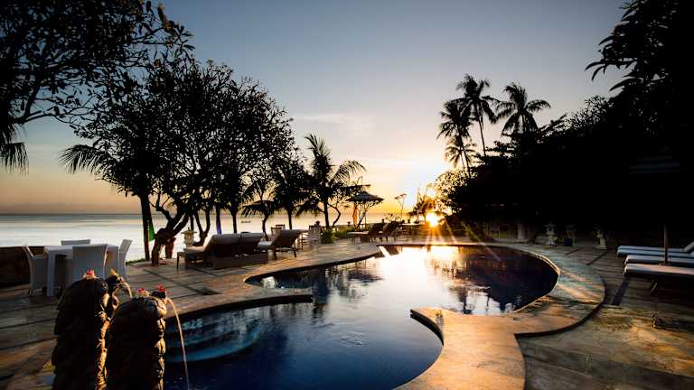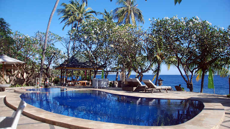 Das Poinciana Resort in Tejakula bietet Urlaubern einen harmonischen Rückzugsort am Strand mit herrlicher Aussicht auf die Balisee. Genießen Sie die Ruhe und Entspannung in den Villen mit Blick auf das Meer, den Pool und den üppigen Garten. Entspannen Sie am Pool oder lassen Sie sich im Spa verwöhnen. Das Restaurant serviert eine Auswahl an balinesischen, indonesischen und westlichen Gerichten aus frischen und regionalen Zutaten.