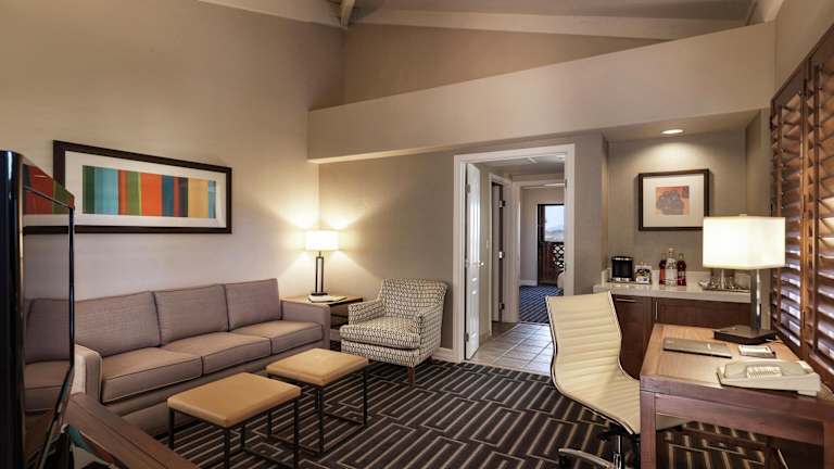 Das Resort verfügt über 584 Nichtraucherzimmer, die alle mit modernen Annehmlichkeiten ausgestattet sind. Die Standard Suiten bieten eine geräumige Aufteilung mit separatem Wohnzimmer und Schlafzimmer. Zur Ausstattung gehören individuell regulierbare Klimaanlage und Heizung, Sitzecke, Sofa, Bügeleisen, Bügelbrett, Kaffee-/Teezubereiter, Minibar, Telefon, Flachbildfernseher, WLAN/WiFi und ein Badezimmer mit Badewanne oder Dusche.