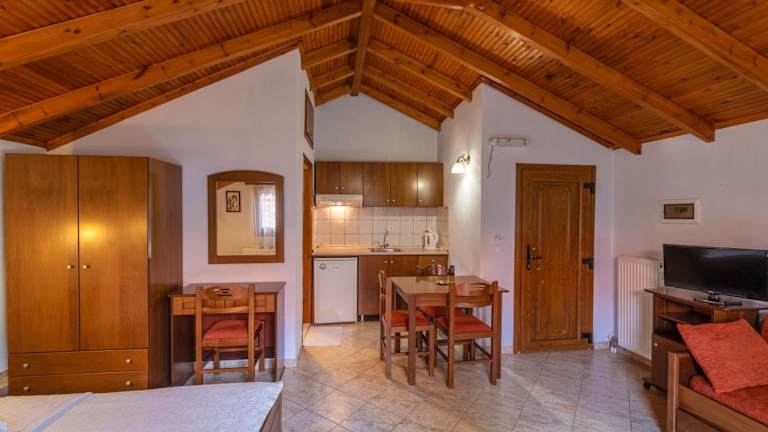 In der Snackbar des Hotels können Sie Getränke und Kaffee genießen, entweder in einem angelegten Blumengarten oder im Innenbereich am Kamin. Es gibt auch eine Vielzahl von Tavernen und Geschäften in der Nähe, in denen Sie lokale Spezialitäten probieren können.