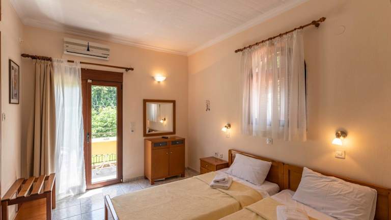 Der Garten des Hotels Castle Pontos lädt zum Verweilen ein und bietet einen Kinderspielplatz sowie Sitzgelegenheiten, um die Natur zu genießen. Der Strand Skala Potamias ist nur wenige Schritte entfernt und bietet Möglichkeiten zum Schwimmen und Sonnenbaden. Der berühmte Strand Chrissi Ammoudia ist ebenfalls in der Nähe und einen Besuch wert.