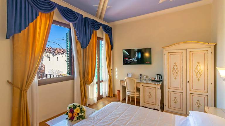 Erleben Sie einen einzigartigen Aufenthalt im Herzen von Florenz im historischen Hotel, das einst das Stadthaus einer bekannten Kaufmannsfamilie war. Genießen Sie den modernen Komfort und erkunden Sie die Stadt von dieser zentralen Lage aus. Das Hotel bietet 3 Einzel- und 22 Doppelzimmer auf 3 Etagen, die durch einen Aufzug erreichbar sind. Das mehrsprachige Personal an der 24-Stunden-Rezeption steht Ihnen gerne zur Verfügung. WLAN ist im gesamten Hotel verfügbar. Starten Sie Ihren Tag mit einem nahrhaften Frühstück und genießen Sie die gastronomischen Einrichtungen des Hotels. Sportbegeisterte können das Fitnessstudio nutzen und Fahrräder ausleihen, um die Umgebung zu erkunden. Die Zimmer sind komfortabel eingerichtet und verfügen über Klimaanlage, Heizung und kostenfreies WLAN.