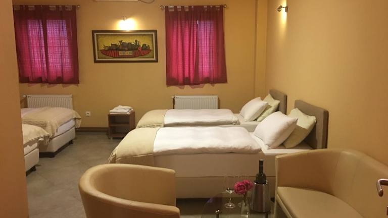 Das Hotel Portal in Skopje bietet komfortable und klimatisierte Unterkünfte mit kostenfreiem WLAN. Freuen Sie sich auf Annehmlichkeiten wie eine Snackbar, eine Terrasse mit Grillmöglichkeiten und kostenfreie Parkplätze. Die Lage des Hotels in der Nähe des Flusses Vardar ermöglicht es Ihnen, die VIP Arena - Boris Trajkovski Sportzentrum und den neuen Aquapark in nur 200 m Entfernung zu besuchen. Die geräumigen Zimmer und Apartments sind mit modernen Annehmlichkeiten wie einer Minibar und einem Flachbild-Sat-TV ausgestattet. Einige Apartments verfügen sogar über eine separate Küche und ein Wohnzimmer. Das freundliche Personal an der 24-Stunden-Rezeption steht Ihnen gerne zur Verfügung und kann Ihnen ein Frühstück servieren oder einen Wäscheservice arrangieren. In der Nähe des Hotels finden Sie einen Supermarkt sowie verschiedene medizinische Einrichtungen. Das Stadtzentrum von Skopje und weitere Sehenswürdigkeiten wie der Stadtpark und die Telecom Arena sind ebenfalls leicht zu erreichen.