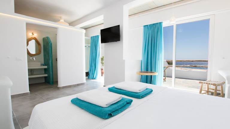 Die Zimmer im Poseidon Blue Gastronomy Hotel sind schlicht und in hellen Farben gehalten. Jedes Zimmer verfügt über eine Terrasse oder einen Balkon mit Blick auf die Ägäis, auf der Sie entspannen und die frische Meeresluft genießen können. Zur Ausstattung gehören geflieste Böden, ein Radio und ein eigenes Bad mit Dusche.