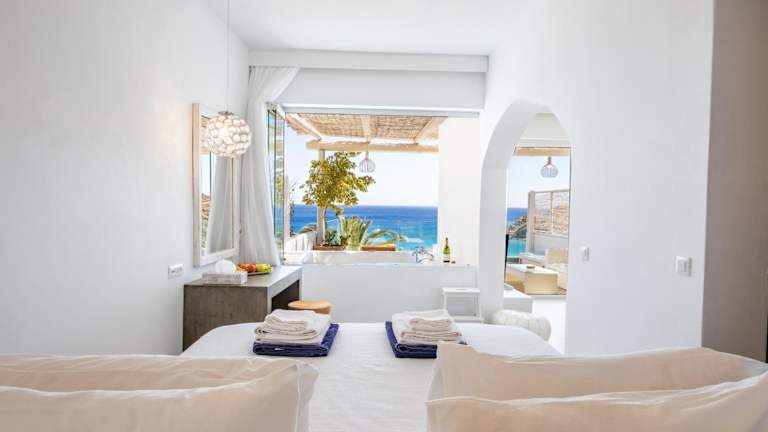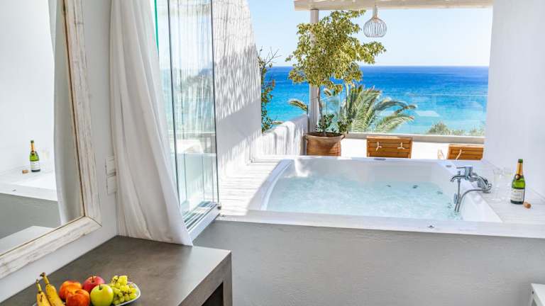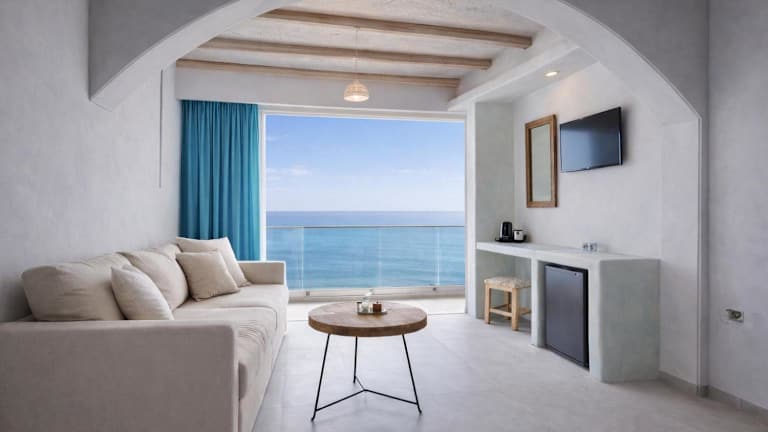 Das Poseidon Blue Gastronomy Hotel liegt oberhalb eines abgelegenen Strandes in Afiartis auf der griechischen Insel Karpathos. Die ruhige Lage bietet Ihnen die Möglichkeit, die Schönheit der umliegenden Natur und den Blick auf das türkisfarbene Meer zu genießen. Das Dorf Pigadia, mit seinen Einkaufsmöglichkeiten, Restaurants und Unterhaltungsmöglichkeiten, ist etwa 20 Autominuten entfernt.