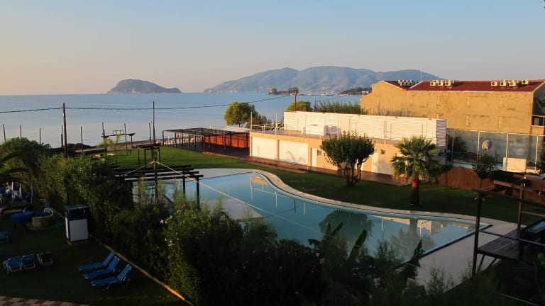 Das Poseidon Beach Hotel liegt direkt am langen Sandstrand von Laganas. In der Nähe befinden sich Tavernen und Bars, während das Zentrum der Stadt etwa 700 m entfernt ist. Die Bushaltestelle nach Zakynthos Stadt ist nur 400 m vom Hotel entfernt. Die Transferzeit zum Flughafen Zakynthos beträgt ca. 20 Minuten.